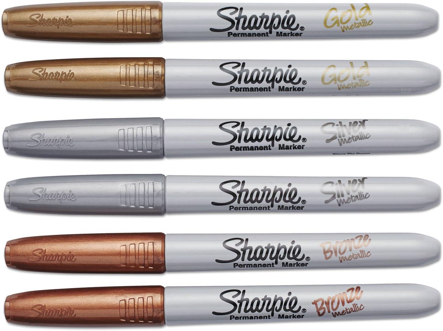 1829201 Sharpie Metallic Permanent Marker, Fine Pt, Gold/Silver/Bronze Pack of 6