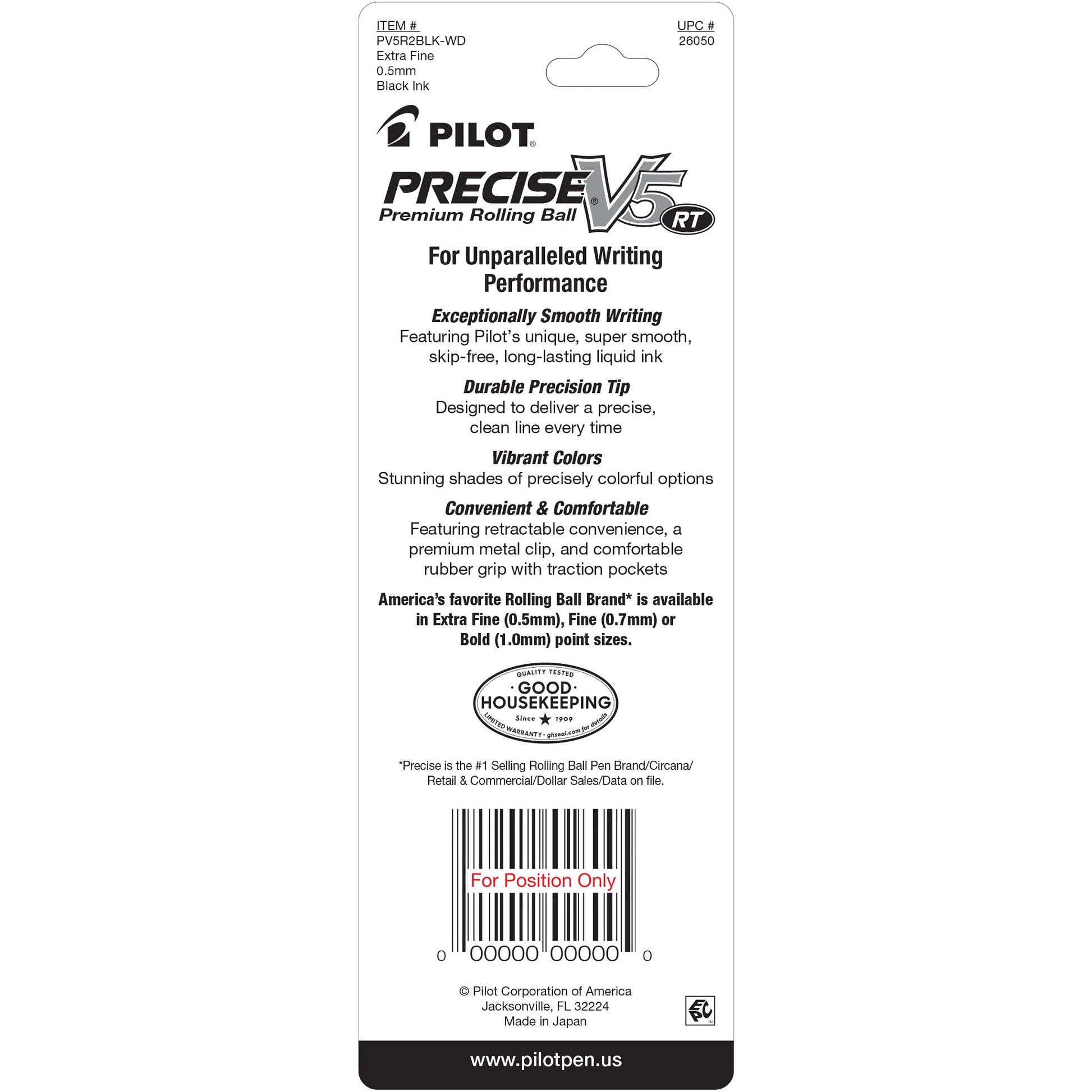 26050 Pilot Precise V5 RT Rollingball Pen, Ex Fine 0.5mm, Black Ink, 1 Pack of 2