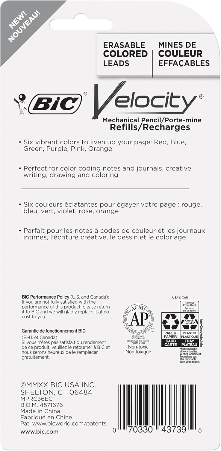 Add vibrant color to your writing with BIC Velocity Colored Leads Mechanical Pencil Refills. This assorted pack of 36 leads lets you express your creativity, organize notes, or highlight important details with eye-catching colors. Compatible with BIC Velocity mechanical pencils, these premium refills ensure smooth writing and lasting performance.