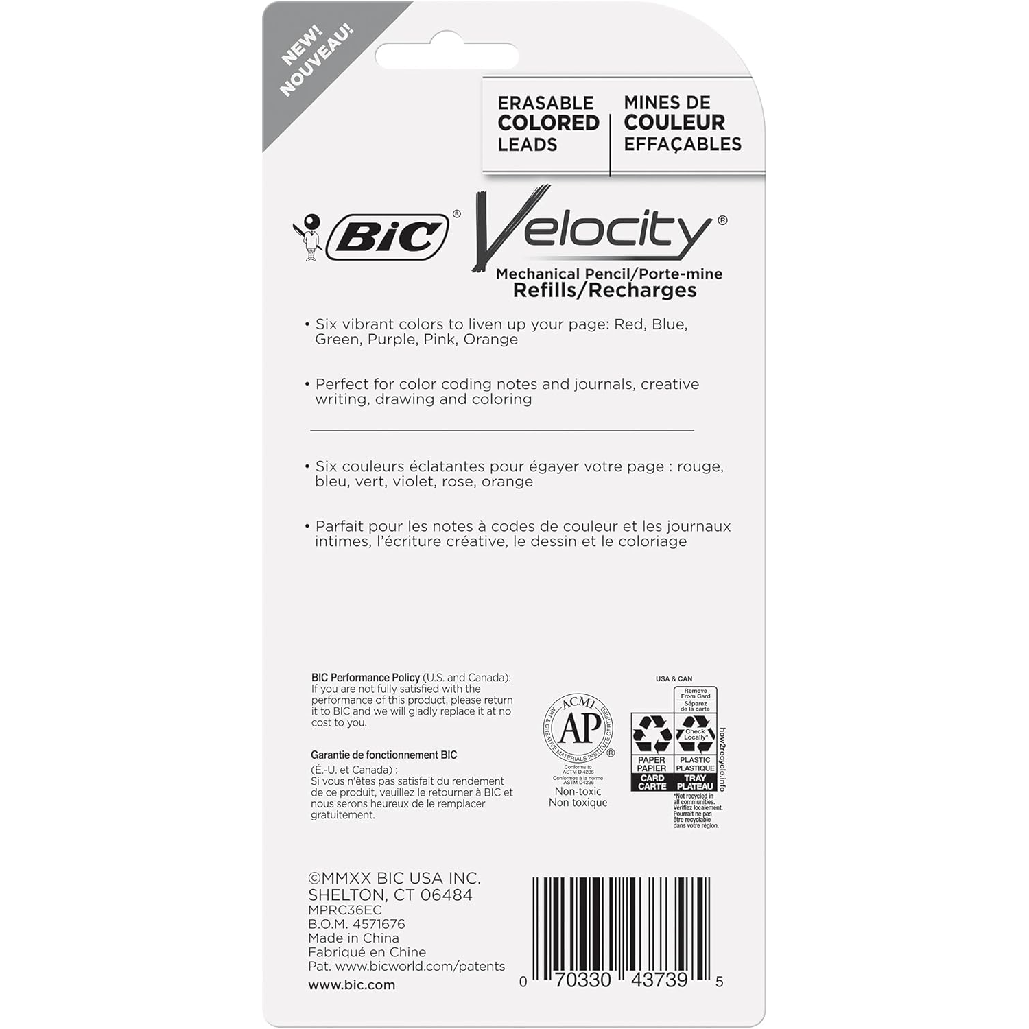 Enhance your journaling journey with BIC Velocity Mechanical Pencils with Colored Leads. You'll find joy in expressing yourself through six wonderful colors—red, orange, pink, green, blue, and purple—perfect for adding personal touches to your journals, drawings, and notes. Don't worry about mistakes; each 0.7mm pencil includes a reliable eraser to help you feel confident as you create. The thoughtfully designed comfortable grip supports your hand while writing, and the helpful micro-advance click prevents frustrating lead breakage, allowing your creativity to flow uninterrupted. These ACMI/AP certified, non-toxic pencils are here to support your creative expression every step of the way.