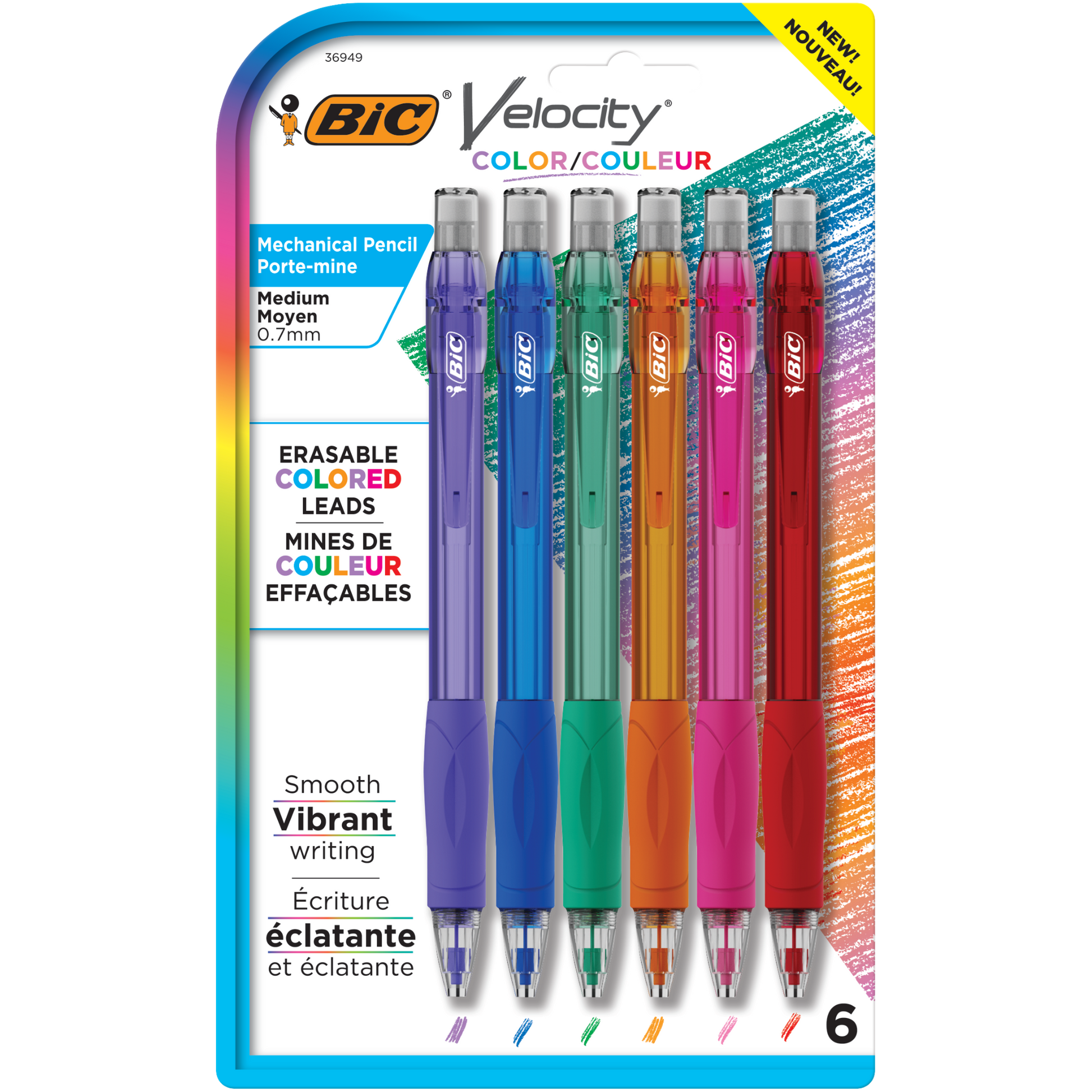 BIC Velocity Pencil w/Colored Leads, Assorted, 6 Pack