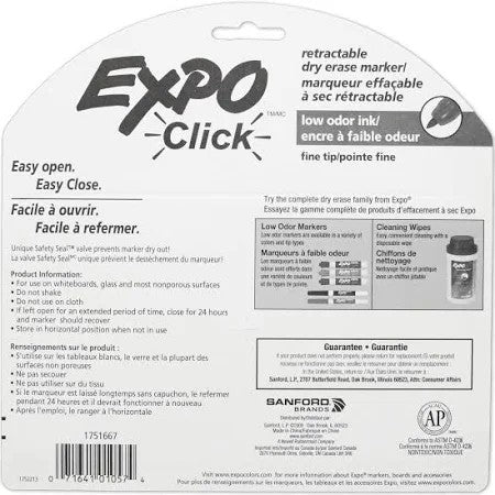 Expo 1751667 Click Dry Erase Markers Fine Tip Assorted 6/Set
