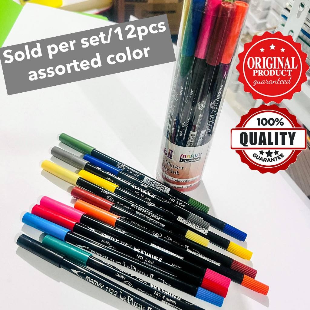 Marvy 1122-12A Le Plume ll Double-Ended Markers with Brush and FIne Tips Primary Set of 12
