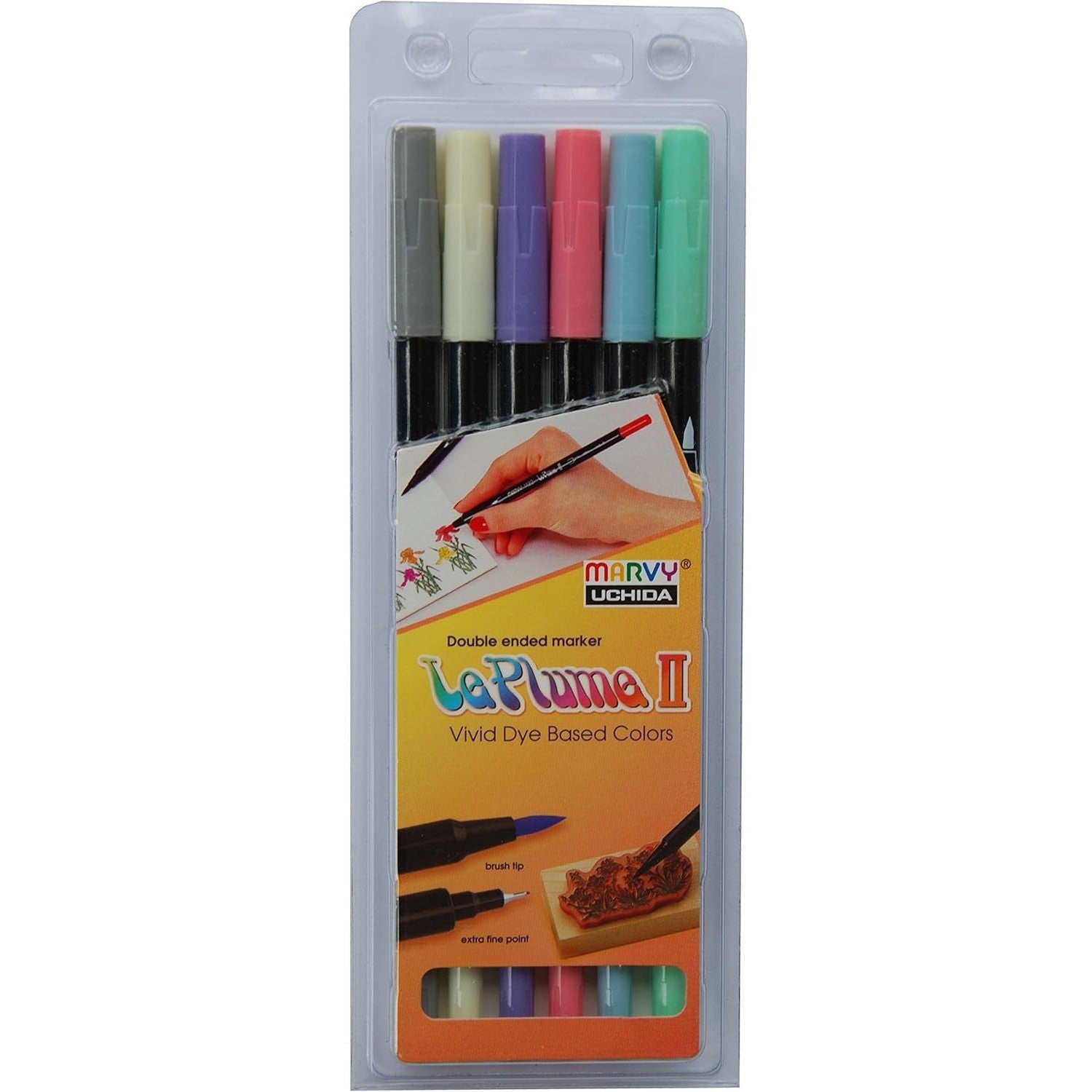 Marvy 1122-6H Le Plume ll Double Ended, Brush and Fine point Savannah Set of 6