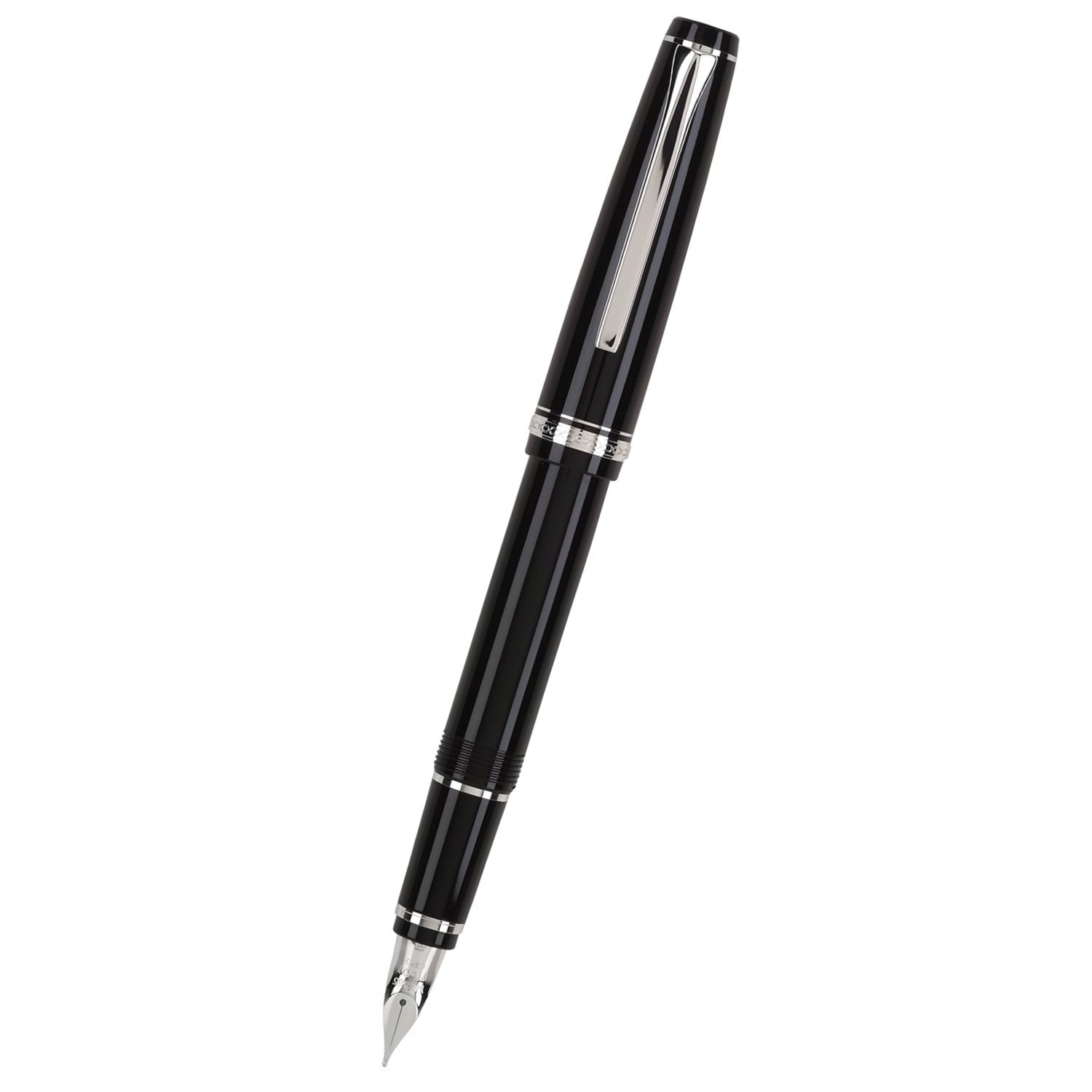 Namiki Falcon Fountain Pen, Black Barrel, Rhodium Accents, Soft Fine Nib (60741)