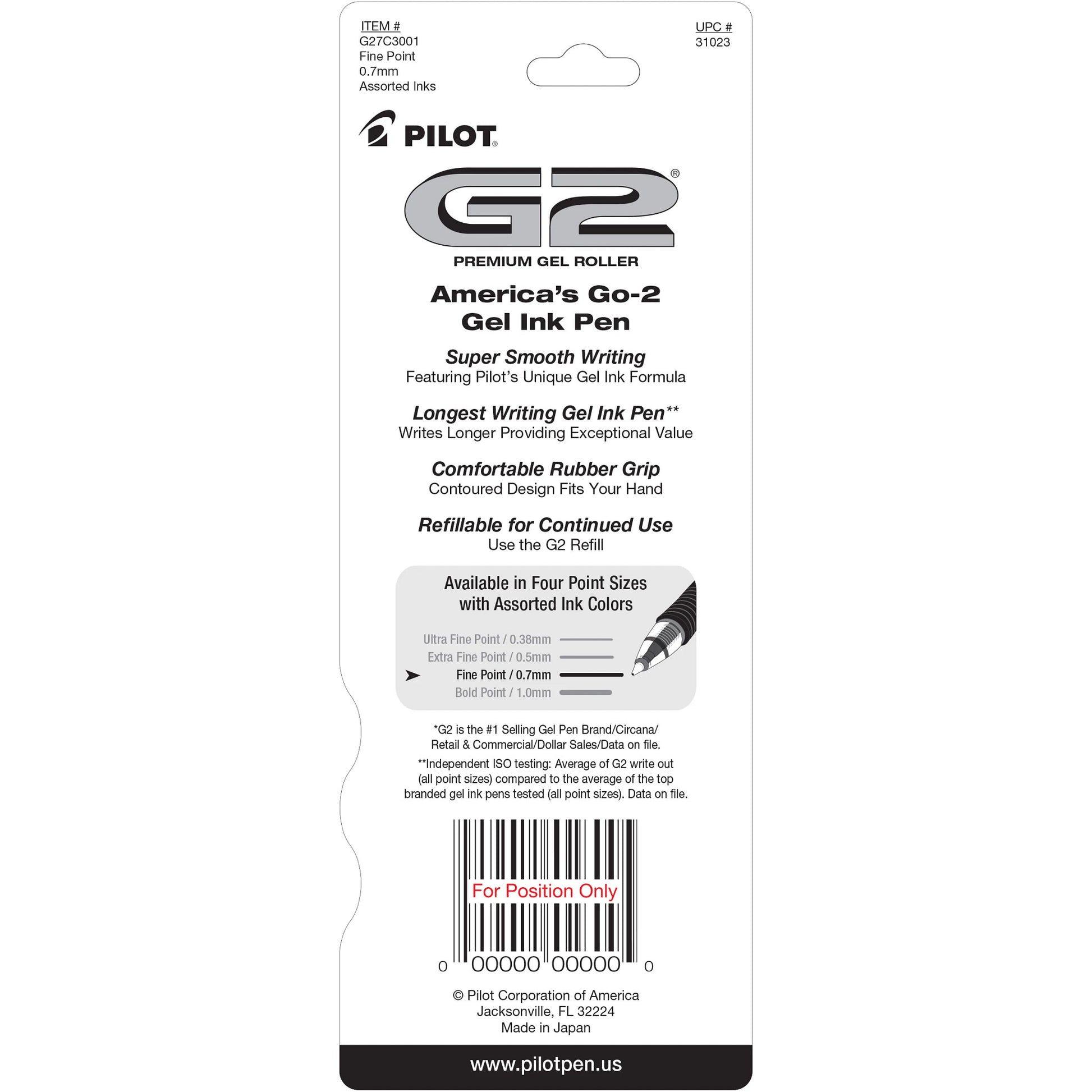 Pilot 31023 G2 Gel Ink Rolling Ball 3pk Asst