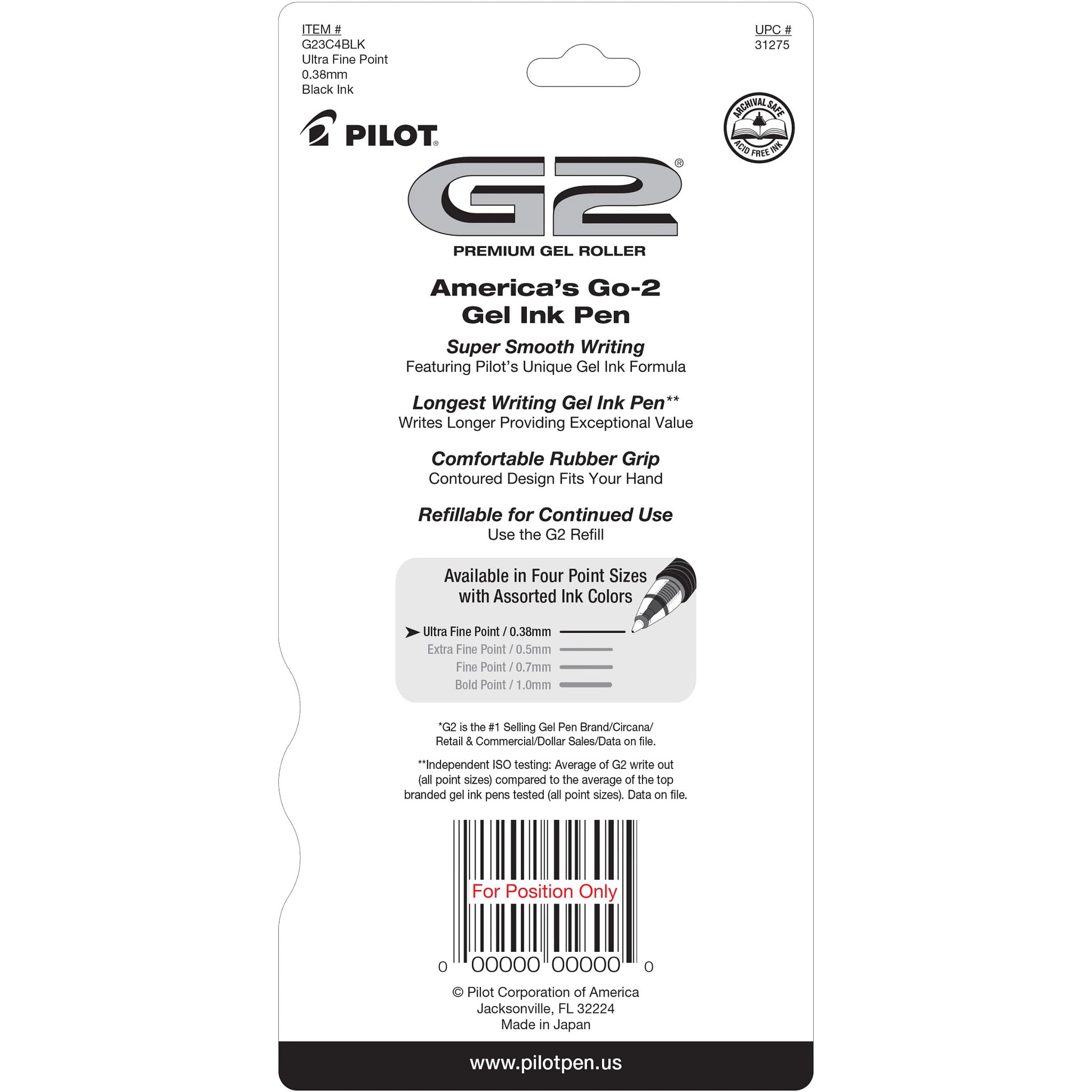 Pilot 31275 G2-3 Ultra Fine (Black) 4 Pack