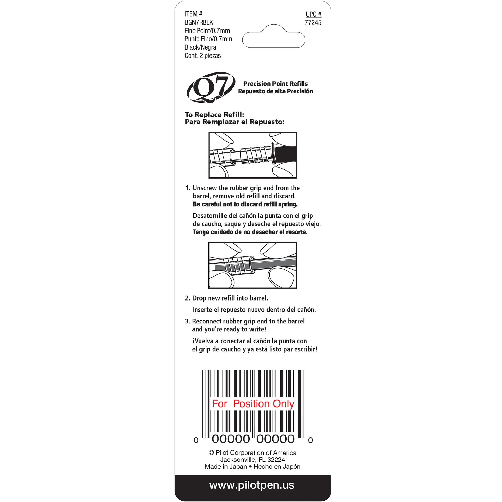 Pilot 77245 BGN7R Q7 Needle Point Gel Ink Refills, Black
