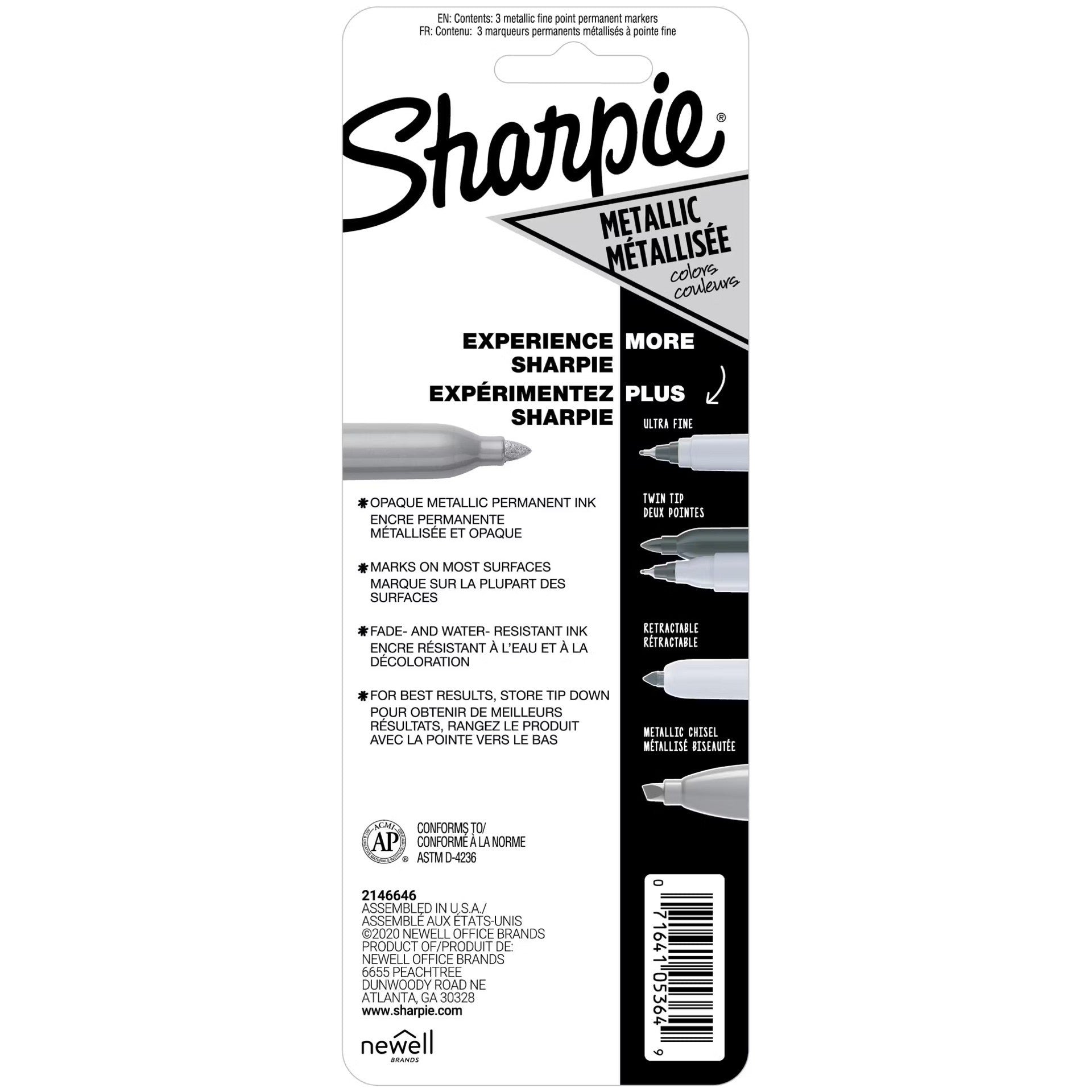Sharpie 1823815 Metallic Fine Pnt Permanent Marker, 1 Silver, 1 Bronze & 1 Gold Markers