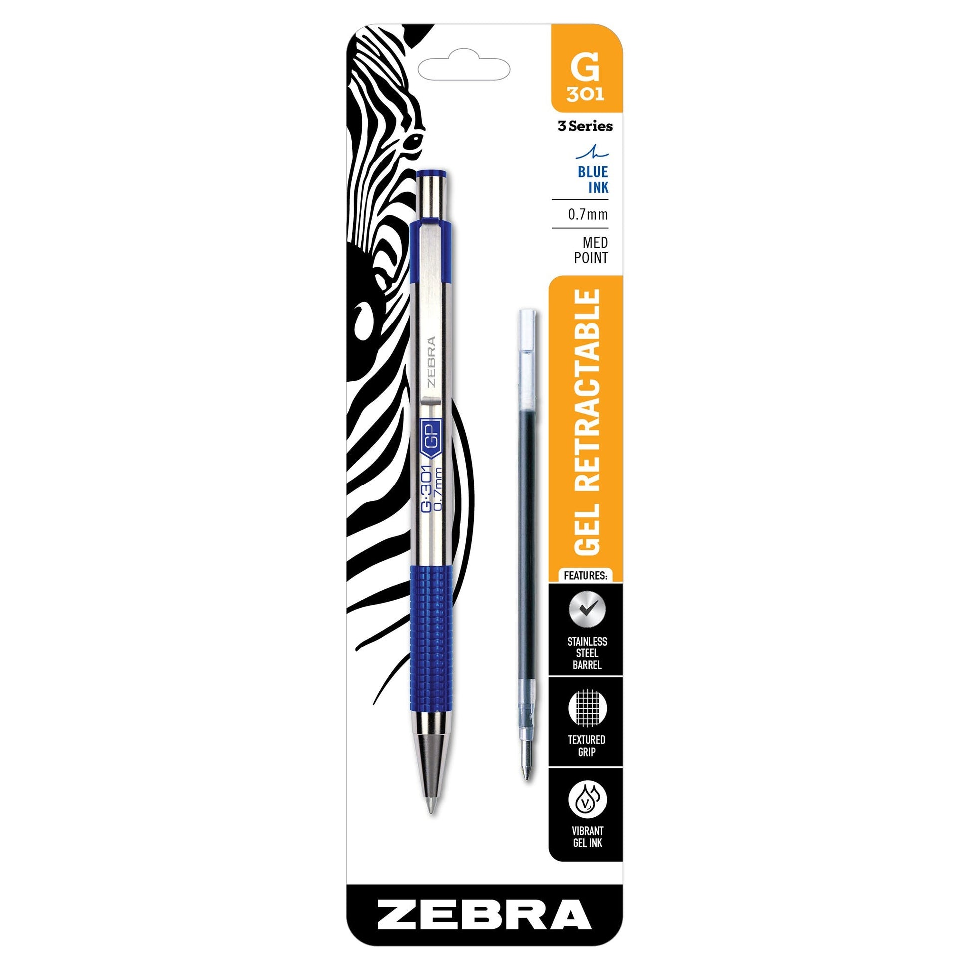 Zebra 41321 G-301 Gel Retractable 0.7mm Blue 1pk with Refill